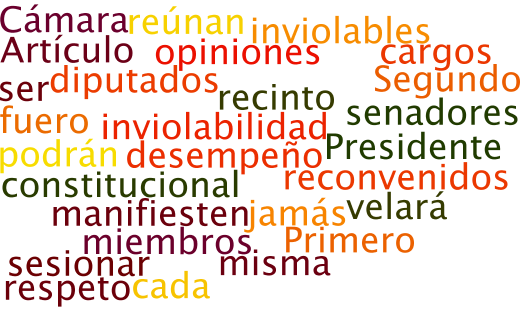| Primero | Artículo 61. Los diputados y senadores son inviolables por las opiniones que manifiesten en el desempeño de sus cargos, y jamás podrán ser reconvenidos por ellas. | |